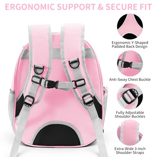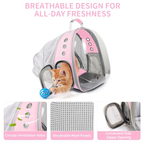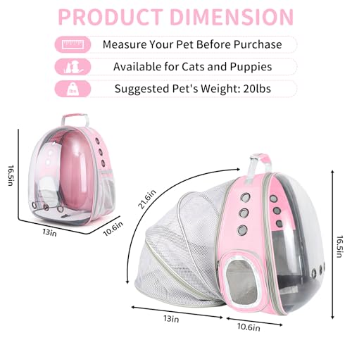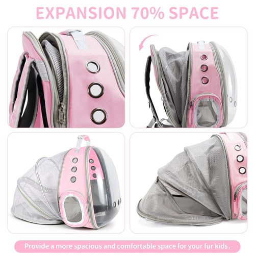 Cat Backpack Carrier, Back Expandable Pet Backpack with Bubble Window, Airline Approved Pet Travel Bag for Small/Medium Cats & Puppies, Hiking, Camping, Outdoor Use (Pink)