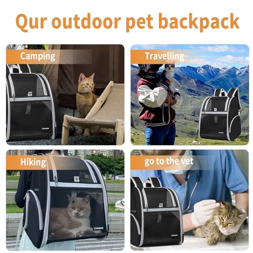 Cat Backpack Carrier Pet Backpack Carrier for Small Dogs and Medium cat Puppy Kitten Bunny up to 15lbs, Cat Carrying Backpack Collapsible with Fully Ventilated Mesh with Safety Leash (Black)