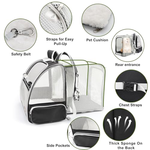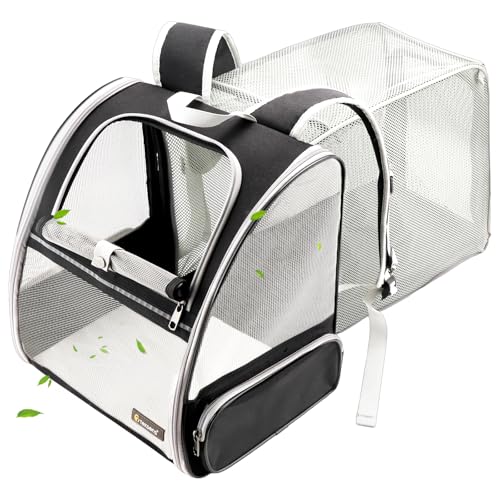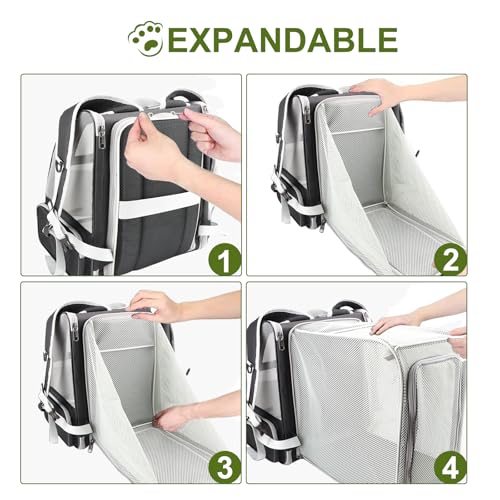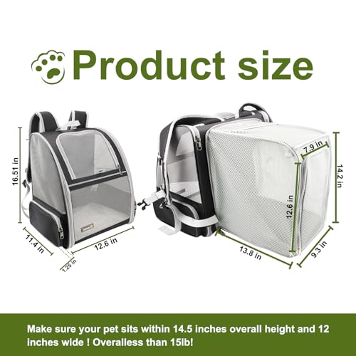 【Expandable for More Space】Expanded size: 13.8″L x 9.3″W x 14.2″H. This cat carrier with an expandable back design provides additional space and enhanced air circulation, allowing your pet a more comfortable and relaxed environment and reducing anxiety. The real ever bigger expandable cat backpack.