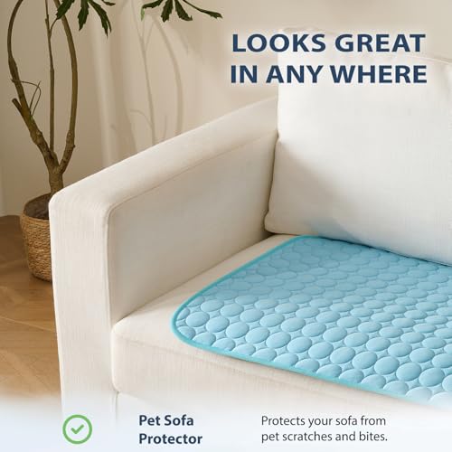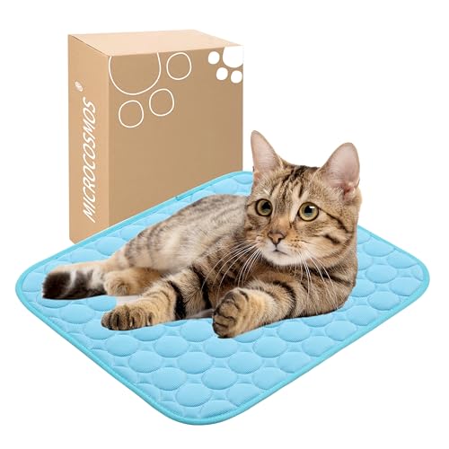 MICROCOSMOS Summer Cooling Mat & Sleeping Pad- Water Absorption Top, Materials Safe, Easy Carry, EZ Clean. Keep Cooling for Pets, Kids and Adults.(Blue, 19″ x 15″)