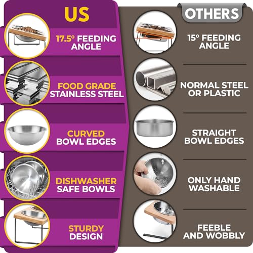 Raised cat Bowls for Indoor Cats by WinTruffles, Elevated cat Bowls, Tilted and Elevated Anti Vomiting Cat Dishes for Food and Water, Set of 2 Stainless Steel Bowl