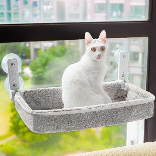 Cat Window Perch & Hammock – Exquisite Sofa Fabric, Safe & Comfortable Design with 4 Strong Suction Cups – Ideal for Large Cats