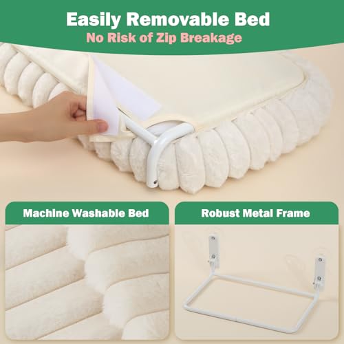 Zakkart SnugCloud Foldable Cat Window Perch – Cordless, Ultra Soft Machine Washable Bed with 4-Sided Bolster, Metal Frame – Window Hammock for Large Cats and Kittens (Cream White, Medium)