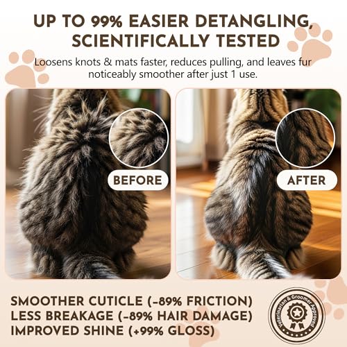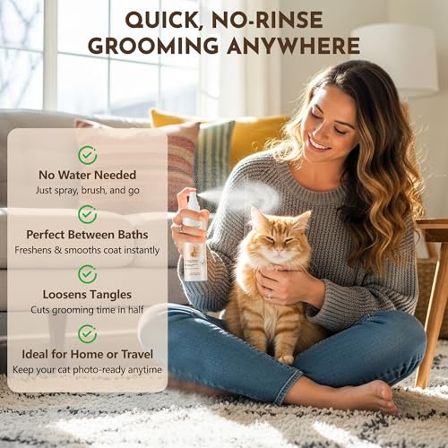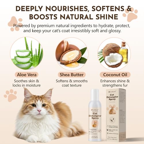 Cat Detangler Spray – Cat Matted Fur Remover for Matted Hair & Everyday Grooming–Dematting Spray for Cats to Loosen Knots, Reduce Pulling, Hydrate Coat & Keep Your Cat’s Fur Soft, Smooth & Manageable