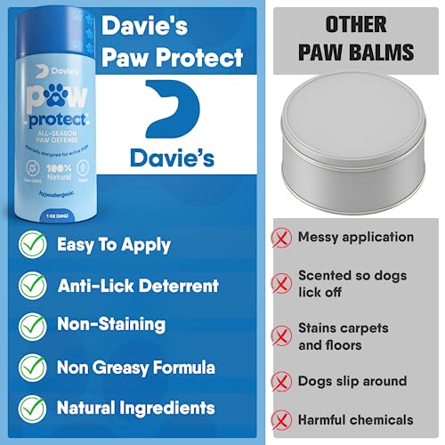 PROTECT, HEAL, MOISTURIZE – Davies Paw Protect is an all-in-one formula that will moisturize, sooth, protect, prevent, and heal. This is great because our paw balm will work for any situation and you will not need multiple balms for different scenarios. Paw Protect absorbs quickly and is anti slip dog paw balm unlike other slippery balms on the market, but it is NOT designed to increase traction!