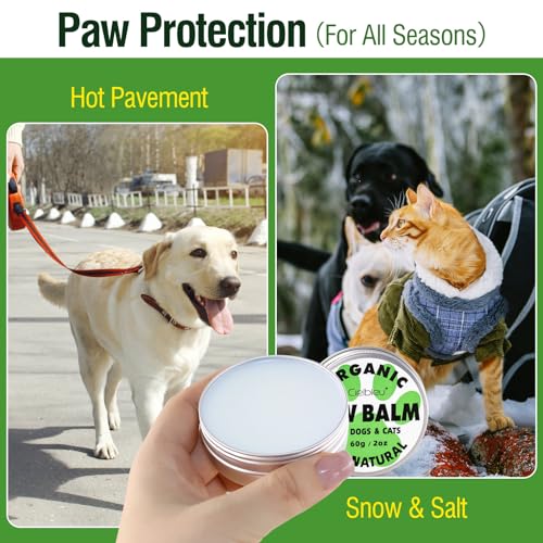 FOR ALL SEASONS-Keep this paw soother for dogs with your furry friend when you are at home or out hiking, traveling, camping, climbing, hunting, to avoid discomfort to her sensitive parts due to cold, dry, frozen or hot pavement. Love her at all times and give her the best dog paw protector and dry dog nose balm.
