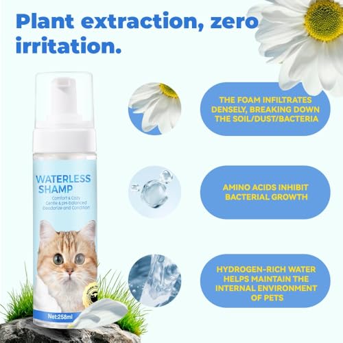 Fulfilling the needs of all cats and kittens: Whether long-haired or short-haired,dry shampoo and Conditioner provides deep cleansing, relieves itchy skin,reduces dander,ensuring enjoy the joy of a waterless spa