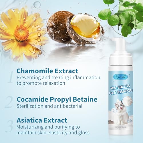 【NO Rinse, Easy to Use】Just spray wash free foam on the cat’s fur and gently brush over any tangles. Without the need to rinse with water, in just a few minutes, your cat will have a smooth, tangle free, soft, and easy to manage fur, making it one of the best choices for cat waterless shampoo.