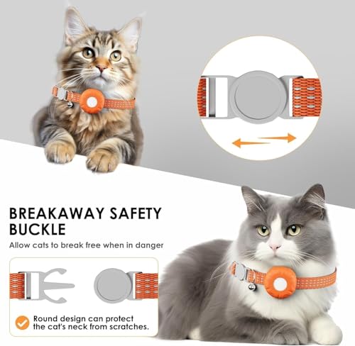 Pet Tracker for Cats,GPS Cat Tracker,Smart Pet Location Tracker with Collar and Holder,Waterproof Cat GPS Tracker Tracking Device,No Monthly Fee,Works with Apple Find My(iOS Only)-Orange