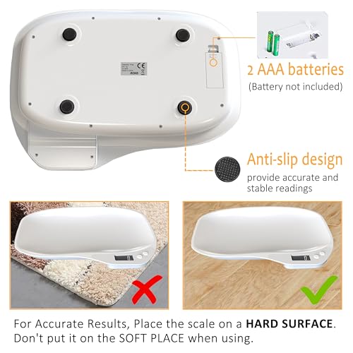 EASY TO USE AND CLEAN: Our small animal scale can be easily cleaned with just a damp cloth. The puppy scale is made of ABS environmentally friendly materials, which is both safe and comfortable for your small pets. The scale with shallow grooves designed to help hold kittens or other mini pets. Our pet scale does not require installation, it can be used by removing the packaging.