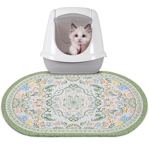 Bienbee Cat Litter Mat, 24″ x 15″ Litter Box Mat Rug with Non-Slip Bottom,Urine and Water Proof, Easy to Clean Cat Supplies Essentials for Indoor Kitty Kitten Floor, Bean-Green M