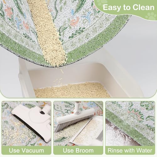 Multiple Sizes & Colors: Our litter rug for cat comes in 3 sizes to effortlessly adapt to any space; This cat mat for litter box is also a stylish accent piece for your home, you can choose from a range of beautiful colors and charming vintage-inspired prints that elevate your space while keeping it clean, ideal as a hoom decor