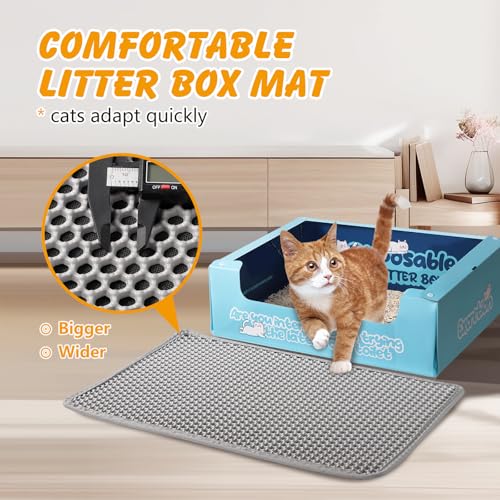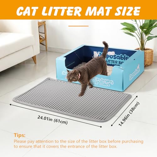 Cat Litter Mat, 24×15 Inch Double Layer Litters Box Mat, Waterproof Cat Mat for Litter Box(Gray)