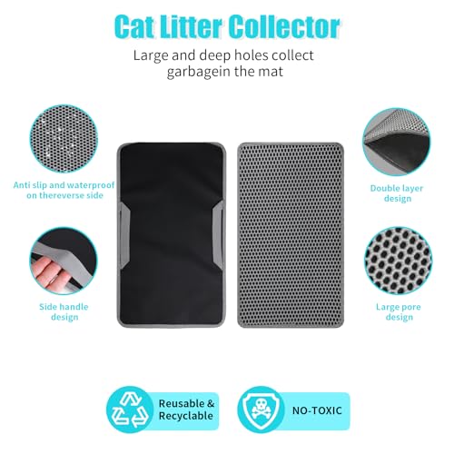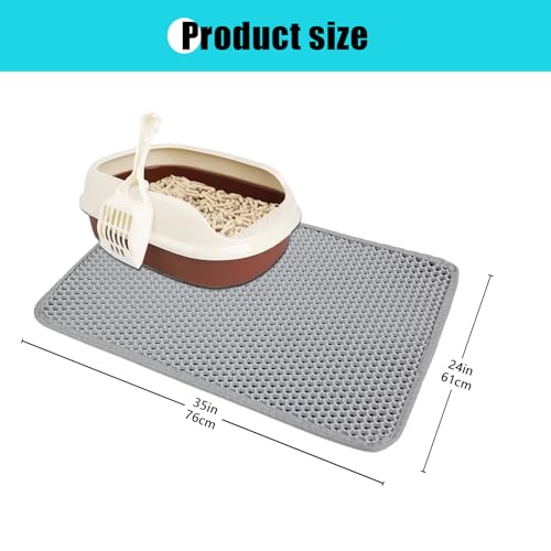 Cat Litter Mat, Kitty Litter Collector, Double Layered Honeycomb Design Waterproof, Anti Urine, Anti Slip, Easy to Clean, Limit Garbage (35″x24″, Grey)
