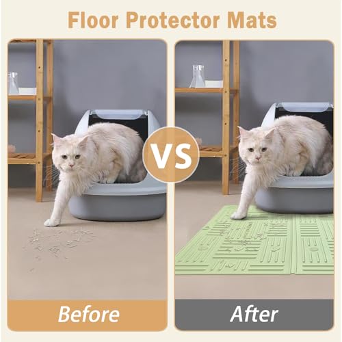 【Waterproof & Non -slip】Our silicone litter box mat is thick and waterproof. Its raised edges prevent water or urine from flowing around and seeping into the floor. And Raised pattern design helps hold the mat firmly in place and prevents sliding around