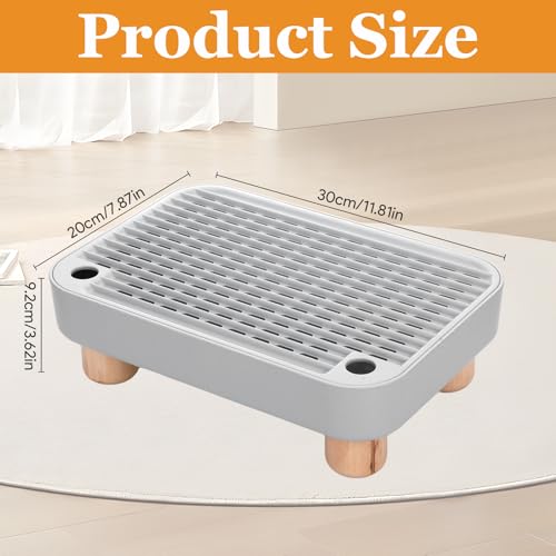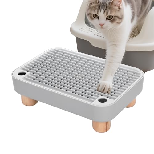 Litter Box Step with Wooden Base, Elevated Cat Ramp for Small & Elderly Pets, Easy-to-Clean Cat Tray Accessory, Non-Slip Grey Litter Box Ramp (11.81″×7.87″×3.62″)