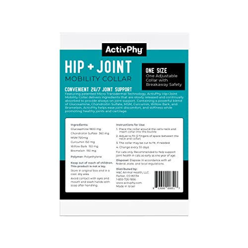 TRANSDERMAL DELIVERY: Featuring patented Micro Transdermal Technology, ActivPhy Hip + Joint Mobility Collar releases active ingredients that are slowly and continually absorbed by your cat. Say goodbye to daily chews!