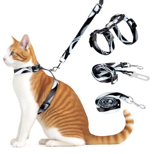 Cat Harness and Leash Set, Escape Proof Cat Harness, Comfortable Soft Lightweight Cat Leash, Use Safe and Easy, Outdoor Walking Travel Kitten Harness for Small Medium Large Cats