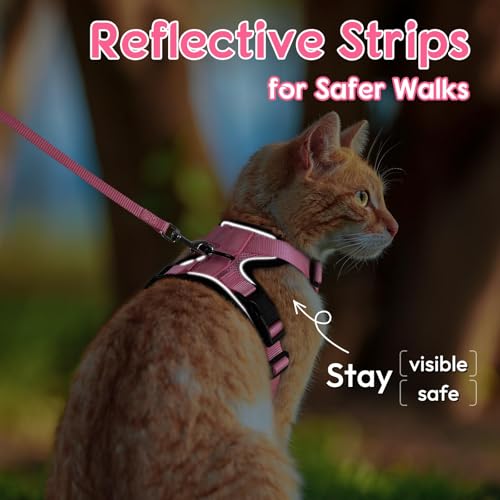 Dooradar Cat Harness and Leash Set, Escape Proof Safe Adjustable Kitten Vest Harnesses for Walking, Easy Control Soft Breathable Mesh Jacket with Reflective Strips for Cats, Pink, XS
