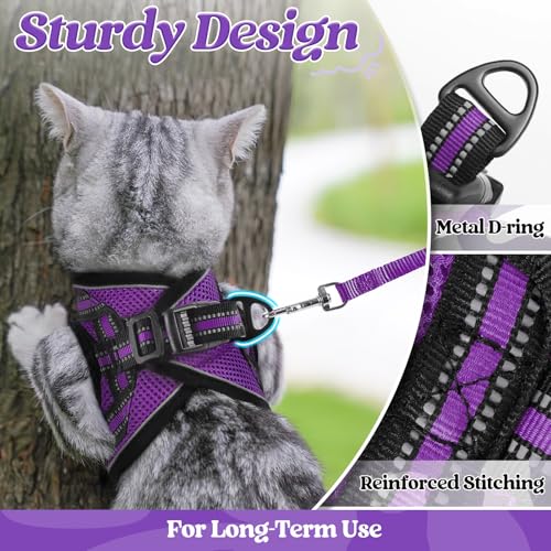 rabbitgoo Cat Harness and Leash Set for Walking Escape Proof, Adjustable Soft Kittens Vest with Reflective Strip for Cats, Comfortable Outdoor Vest, Purple, S