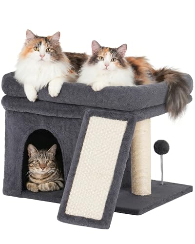 14‘’ Cat Tree Tower with Scratching Post, 20 * 16.5in Perch Bed for Large Adult Cats, Condo Cave for Indoor Small Medium Kittens, Dark Gray