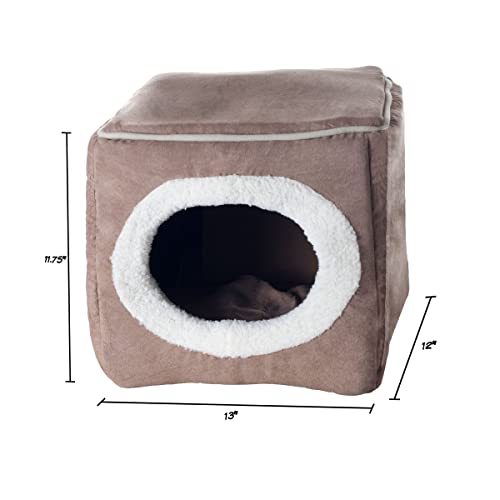 Cat House – Indoor Bed with Removable Foam Cushion – Cat Cave for Puppies, Rabbits, Guinea Pigs, and Other Small Animals by PETMAKER (Light Brown)