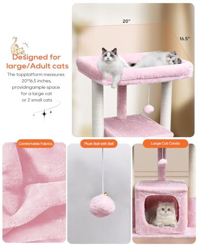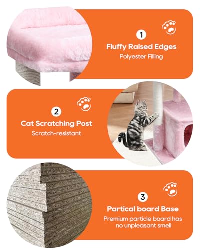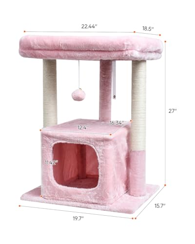 SYANDLVY Small Cat Tree for Indoor Cats Large Adult, 27″ Activity Tower with Scratching Posts, Modern House with Padded Perch, Kittens Condo, Cat Cave, Pink