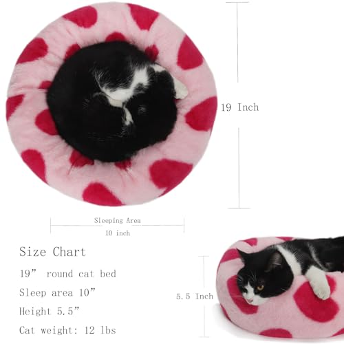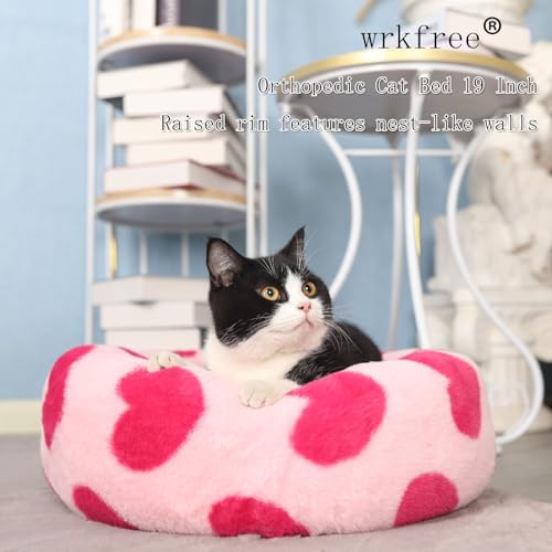 Small Cat Bed Washable Donut Cute with Sides Cat Beds Pink Heart for Girls Calming Orthopedic 20 Inch