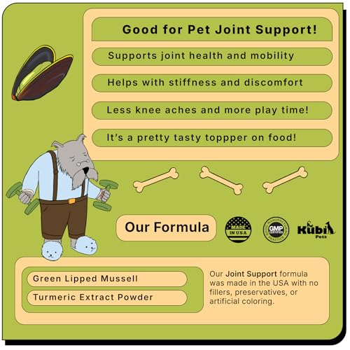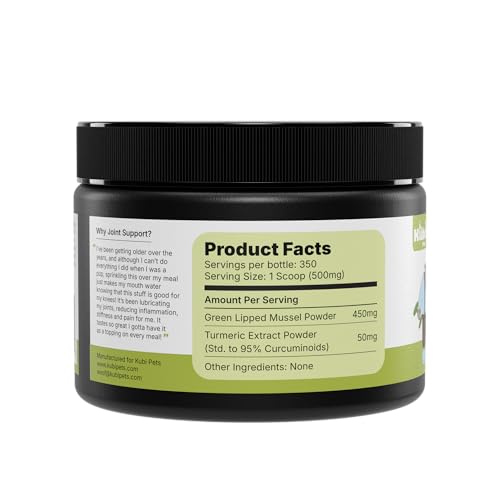 Joint Support with Green Lipped Mussel & Turmeric – Hip & Joint Supplement for Dogs & Cats, 175g (350 Servings) Kubi Pets