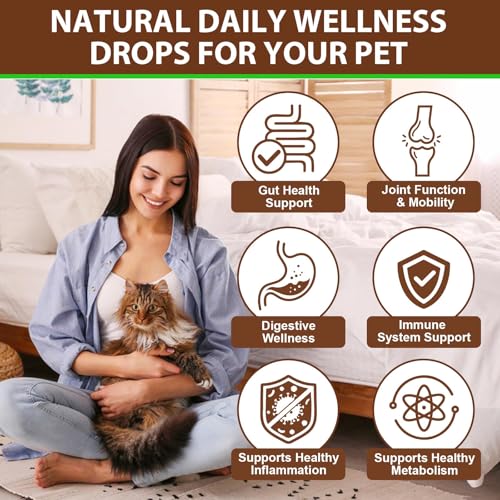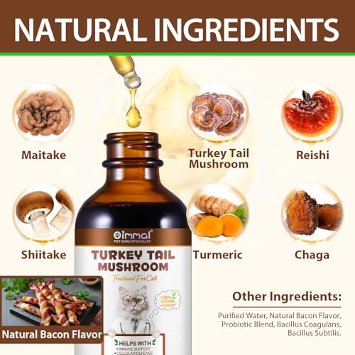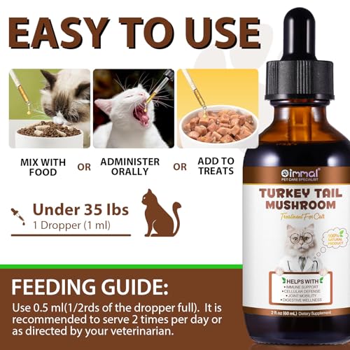 Mushroom Drops for Cats, Natural Cat Immmune Mushroom Liquid Drop with Turkey Tail Mushroom Extract for Immune Support, Digestive & Joint Mobility, Pet Mushroom Herbal Supplement – 2 fl oz (60 ml)