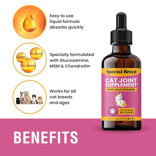 Special Breed Cat Joint Supplement, Liquid Glucosamine with Chondroitin for Cats, Feline Hip and Joint Pain Relief, 2 oz