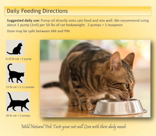 Omega 3 fish oil liquid for pets, purified to remove 99.99% of Fishy Taste and Smell leaving a natural mild flavor your cat will love. Our blend of fish oil is a rich source of Omega-3 fatty acids with 1020mg per teaspoon. Easy to feed topper for pets, liquid alternative to capsules, treats & chews.