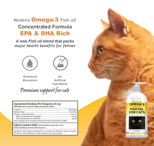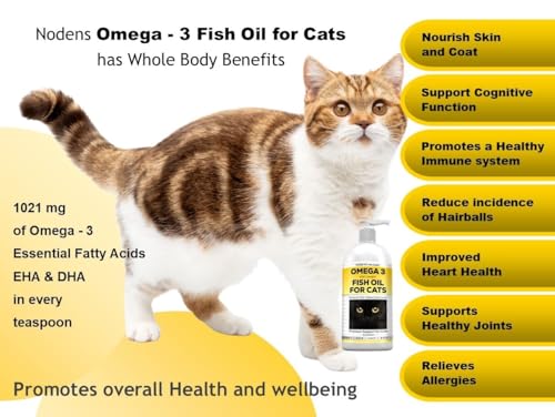 Nodens Natural Fish Oil for Cats Skin & Coat – 100% Pure Omega 3 Fish Oil for Dandruff & Hairballs – Cat Vitamins and Supplements Fish Oil Liquid for Joint Inflammation, Immune Support & Digestion