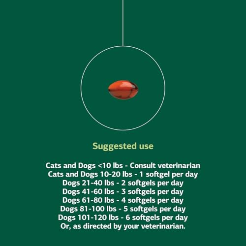 Dietary Pet Supplement Dosing: Administer number of omega-3 supplement softgels based on size of cat or dog, or as directed by your veterinarian