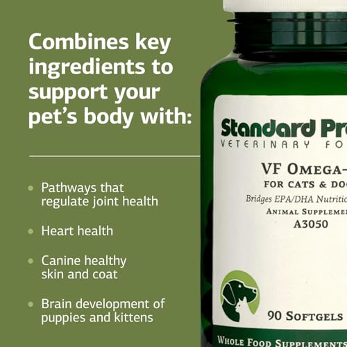 Standard Process Inc. VF Omega-3 for Pets – Dietary Supplement with Omega-3 Fatty Acids – Support Bone Growth, Immune Health, Heart Health – Fish Oil Supplement for Pets – 90 Softgels