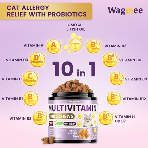 10-in-1 Comprehensive Support: Our cat multivitamin crunchy chews provide a complete multivitamin formula enriched in 10 vitamins and fish oil. They help to support overall well, including energy levels, bones & joints, heart & eye support and a shiny skin & coat.