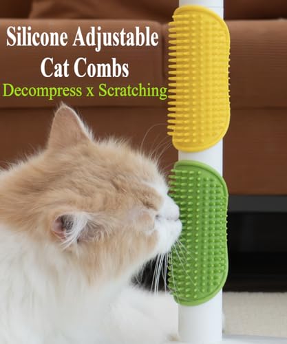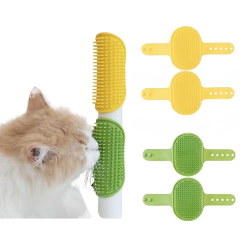 4 Pieces Cat Self Groomer Cat Brushes Silicone Cat Combs for Indoor Cat Corner Cat Face Scratcher Adjustable Cat Massager (Green+Yellow)