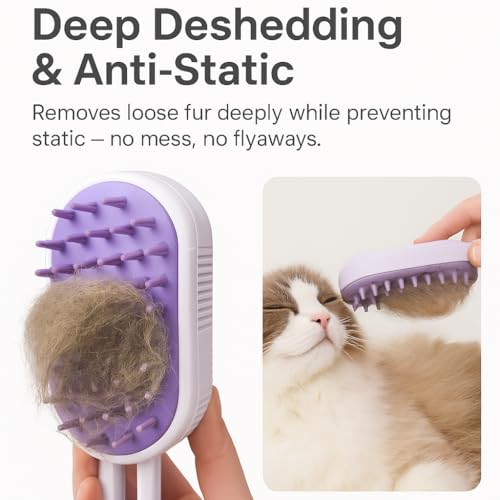 Cat Steam Brush for Shedding – Pet Steam Grooming Tool for Cats & Dogs, Rechargeable De-Shedding Cat Brush with Cleaning & Massage