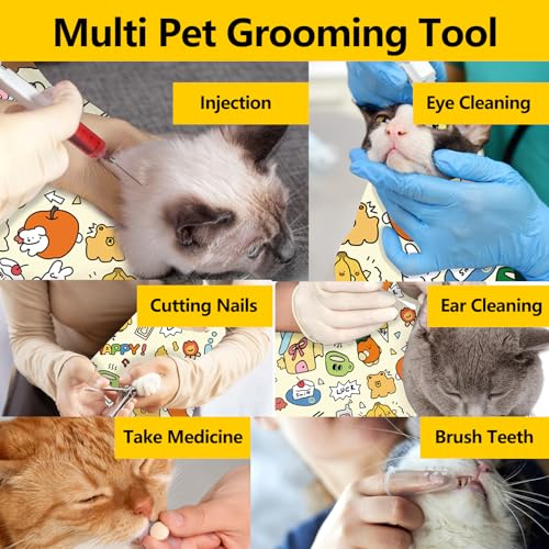 Cat Wrap for Cutting Nails:This multifunctional cat grooming wraps make grooming easy, Whether you need to trim nails, groom,clean ears or give medication, this wrap effective prevents cats from biting, scratching and escaping, ensuring a stress-free experience for both you and your pet
