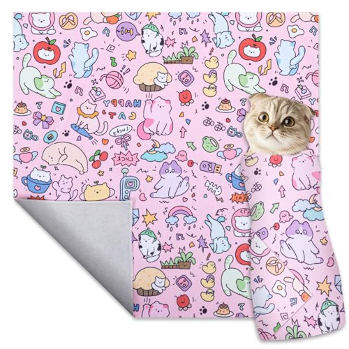 27.6 In Cat Grooming Wrap Self-Adhesive, Cat Wrap for Cutting Nails, Pink Anti-Escape Cat Restraint for Nail Clipping Cat Swaddle Wrap Cat Wrapping Cloth for Pet Cleaning and Beauty (Within 15lbs)