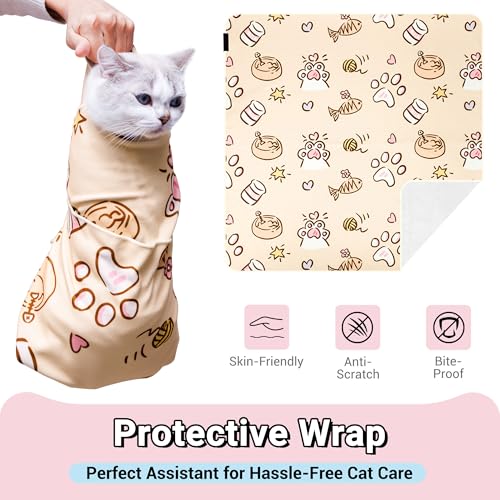35.43″ Extra Large Cat Grooming Wrap,Soft Self-stick Cat Burrito Restraint Blanket Grippy Cloth for Large Cats & Small Dogs Medicine,Nail Clipping,Ear Cleaning,Teeth Brushing Anti-Scratch Anti-Escape
