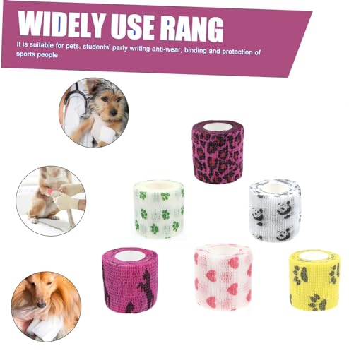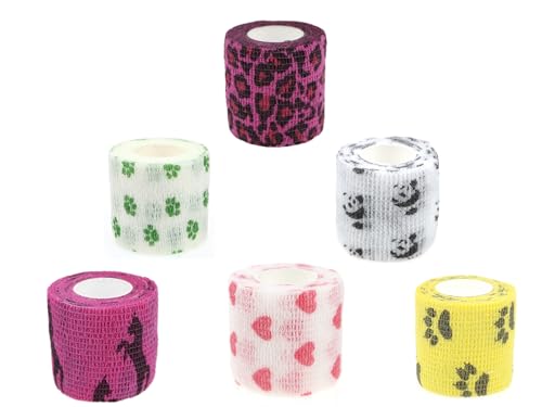 6 Rolls Vet Wrap Tape Bulk 1 Inch, Waterproof Self Adherent for Horses Dogs Cats Animals Pets(Love, Horse, Leopard Print, cat and so one) who was injure or Have Wounds (Cartoon)