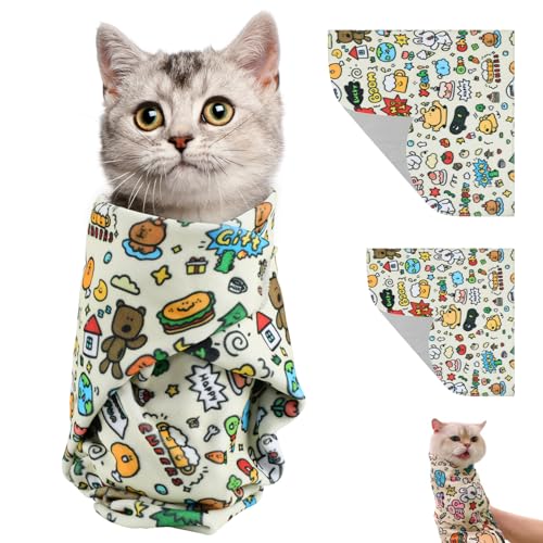 Cat Grooming Wrap, Fabric Cat Restraint Wrap, Self-Adherent, Anti-Bite, Anti-Scratch, Anti-Escape Calming Wrap for Medicine, Nail Clipping- Multifunctional Pet Tool (L (Within 11.1lbs))