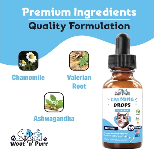 Introducing Woof ‘n’ Purr’s Cat Calming Drops – the ultimate solution to keep your feline friend serene and stress-free! We understand that cats can experience anxiety and nervousness in various situations, and it can be heartbreaking to see them in distress. That’s why we’ve created a powerful herbal tincture that promotes relaxation naturally, so you and your cat can enjoy a peaceful coexistence. Nature’s Serenity: Our tincture is a testament to the incredible calming properties found in nature. We’ve carefully selected a blend of herbs known for their anxiety-reducing and soothing qualities. These herbs work harmoniously to provide your cat with a sense of calm and well-being.🐾 Relaxation on Demand: Whether it’s thunderstorms, car rides, vet visits, or separation anxiety, our herbal calming aid tincture comes to the rescue. Simply administer the recommended dosage, and watch your cat transform from a bundle of nerves into a picture of tranquility. Gentle and Safe: At Woof ‘n’ Purr, we prioritize your cat’s well-being. Our tincture is formulated with the utmost care, using only natural ingredients. There are no harsh chemicals or additives, ensuring it’s gentle yet effective for cats of all ages and breeds.🐱 Enhanced Quality of Life: Beyond alleviating anxiety, our herbal tincture promotes a better quality of life for your feline friend. A calm cat is a happier cat, and with Woof ‘n’ Purr, you can enhance their overall well-being. Peaceful Paws Guarantee: We’re confident in the effectiveness of our Cat Calming drops. In fact, we’re so sure that you and your cat will love the results that we offer a Peaceful Paws Guarantee. If you’re not completely satisfied, let us know, and we’ll make it right.Choose Woof ‘n’ Purr’s natural Cat Calming Drops today and experience the joy of having a relaxed and stress-free feline companion. Your cat deserves the best, and Woof ‘n’ Purr is here to deliver it!