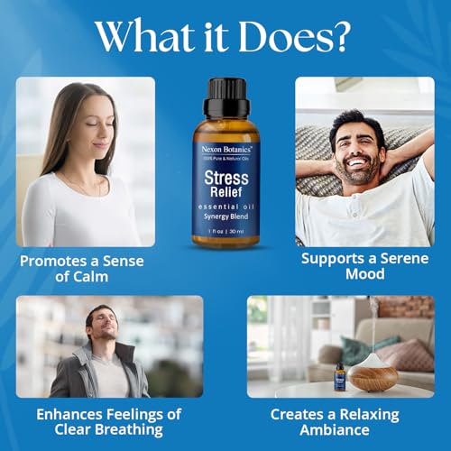 Stress Relief Essential Oil Blend 30 ml – Stress Relief & Calm Essential Oil for Diffusers & Aromatherapy – Promotes Relaxation & Rest – Nexon Botanics