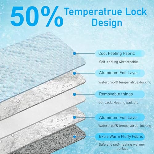 Enhanced Cooling -The top layer is made of 100% nylon cooling fabric, providing a lightweight and breathable feeling, and keeping cool. Tuck the included gel packs into the built-in pockets. Simply soak, freeze and insert into the mat-no electricity required.The inside is lined with insulation material, so it helps trap the cold in. Our cooling pads are safe and durable. For extra coolness, it can be used with air conditioning or a fan.