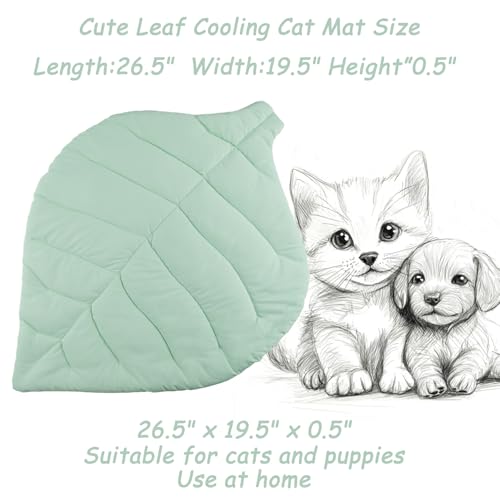 Cat Cooling Mat Pet Leaf Shaped Pad 26.5″x19.5″ Breathable Durable Easy to Clean Pet Cool Mats for Cat and Small Dog use in Floor,Bed,Sofa,Chair,Kennel (Light Green)