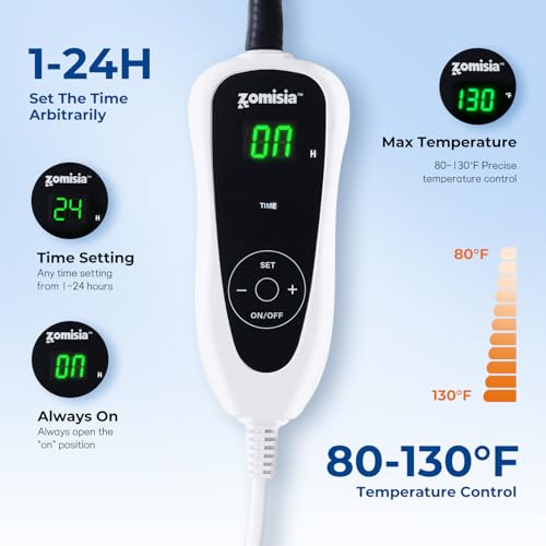 Timed Temperature Control: Our heating pad features a timer and temperature control function, allowing you to adjust the settings according to your pet’s needs. The timer has 24 settings plus 1 continuous mode, and there are 11 temperature levels (80°F to 130°F) to choose from.