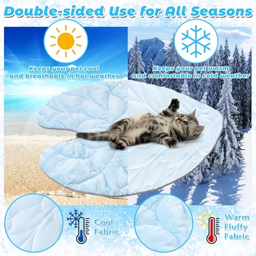 Cooling Mat for Cats Dogs – Pet Leaf Shaped Cool Pad, Summer Double-Sided Cat Puppy Cold & Warm Mats, Pets Washable Sleeping Blanket for Bed Floor Sofa Chair Kennel Indoor (S, 31.8″x 26.7″)