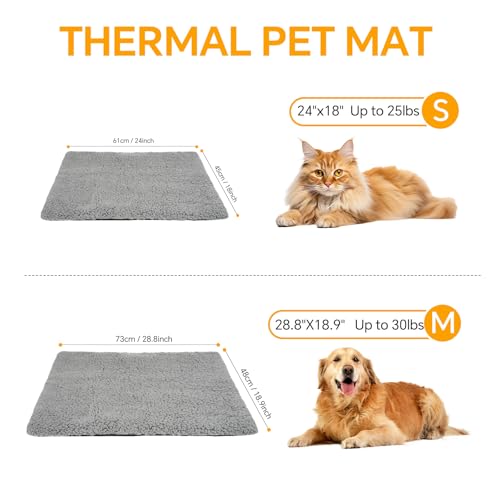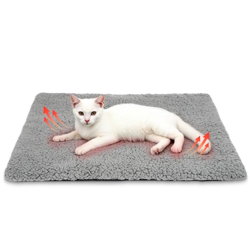 Self Warming Cat Bed Self Heating Cat & Dog Pad – Waterproof Heated Thermal Mat, Non-Slip, Washable for Senior Pets, Kittens, Dogs, Indoor/Outdoor Use, Non-Electric (Grey, 24″ X 18″)